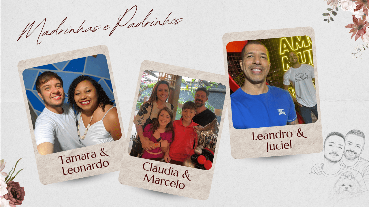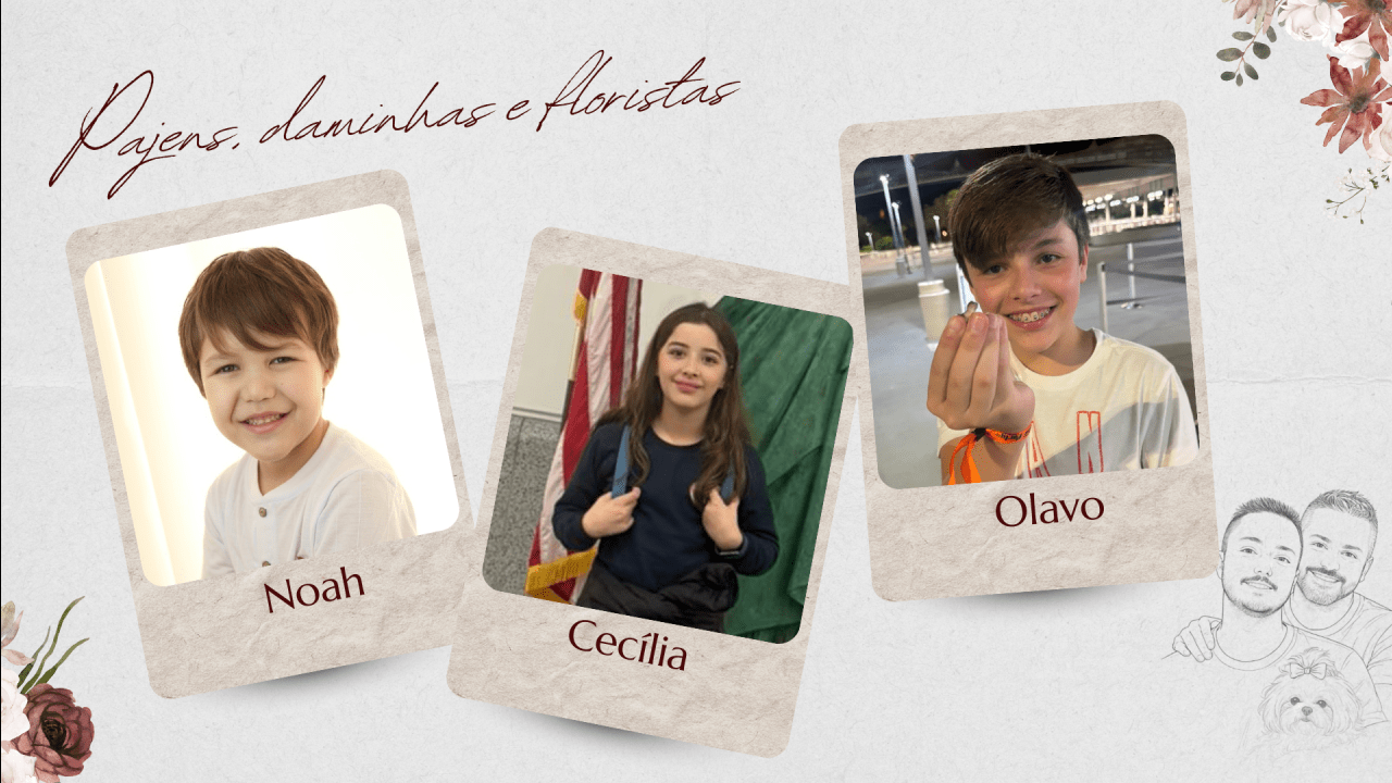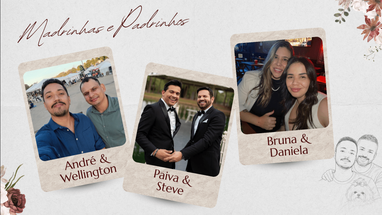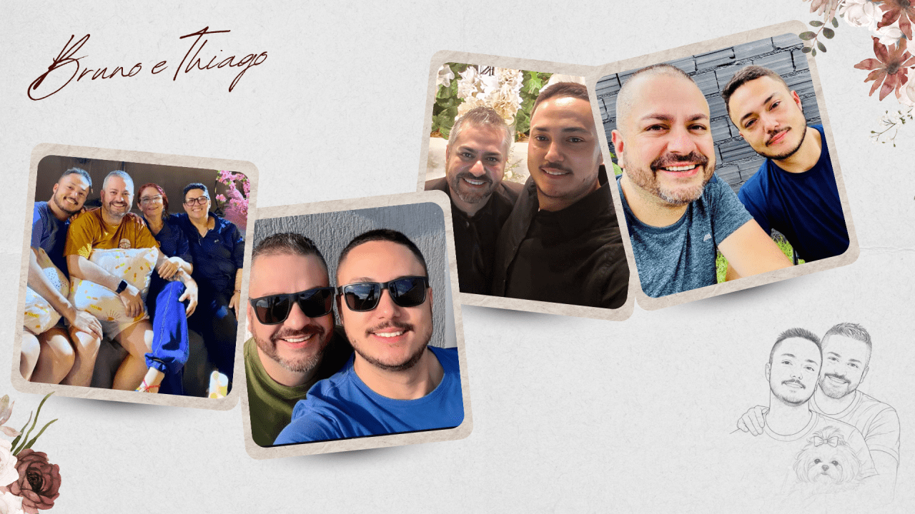 Hoje, Thiago e Bruno dão um novo passo, decididos a construir uma família firmada na fé, no companheirismo e no amor verdadeiro. Celebram o matrimônio com o coração grato, certos de que caminhar juntos, sob a graça de Deus, é o maior presente que poderiam receber.