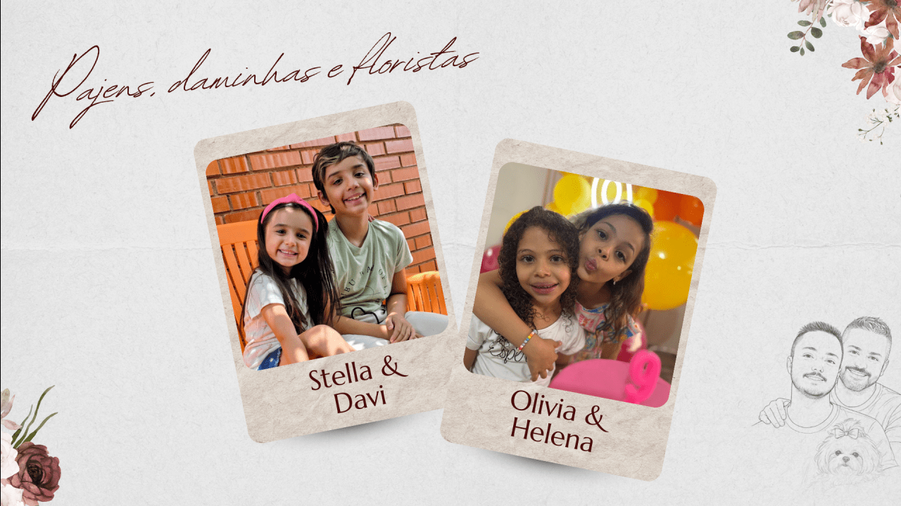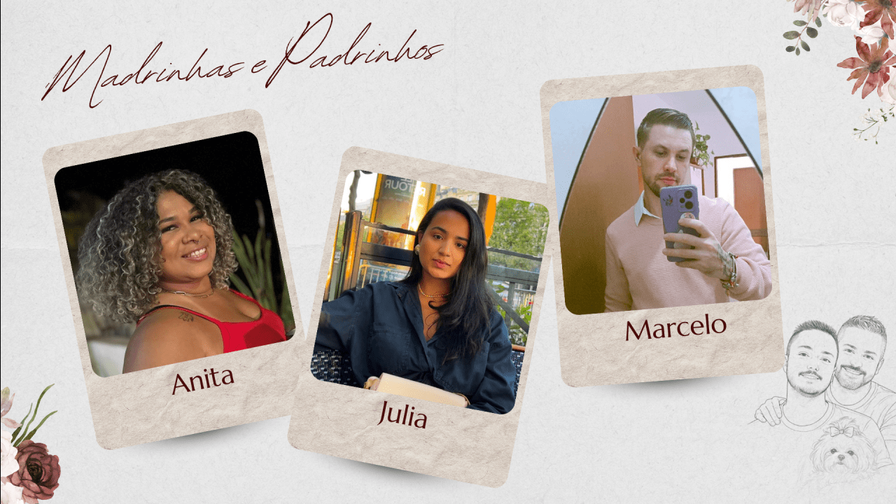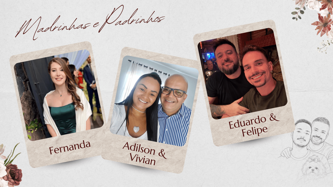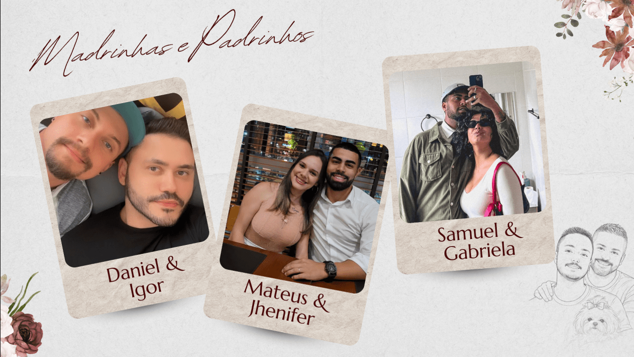 Hoje, Thiago e Bruno dão um novo passo, decididos a construir uma família firmada na fé, no companheirismo e no amor verdadeiro. Celebram o matrimônio com o coração grato, certos de que caminhar juntos, sob a graça de Deus, é o maior presente que poderiam receber.